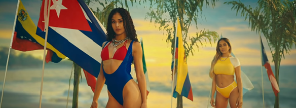 El artista ha querido homenajear a varios países de Latinoamérica donde se puede apreciar las banderas de algunos de ellos. En el primer plano se encuentra la de Cuba siendo la protagonista en varias escenas.