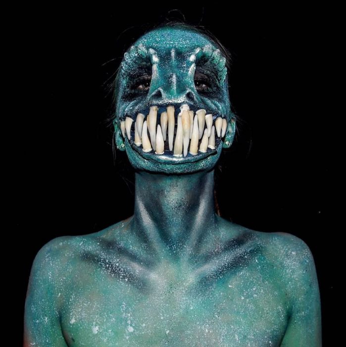 Ahora es capaz de crear pintura corporal, cuernos, dientes, e incluso esculpir prótesis que le ayudan a complementar sus obras y nos dejan ver un mundo realmente impresionante y atractivo.