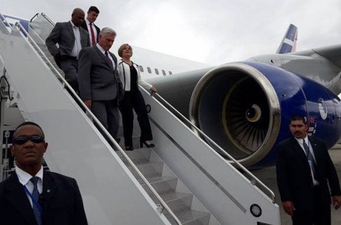 Miguel Díaz-Canel llegó este domingo a Nueva York junto a su esposa, Lis Cuesta Peraza, en su primer viaje como gobernante a Estados Unidos, donde planea denunciar el embargo ante la Asamblea General de Naciones Unidas, informaron medios estatales de la Isla.