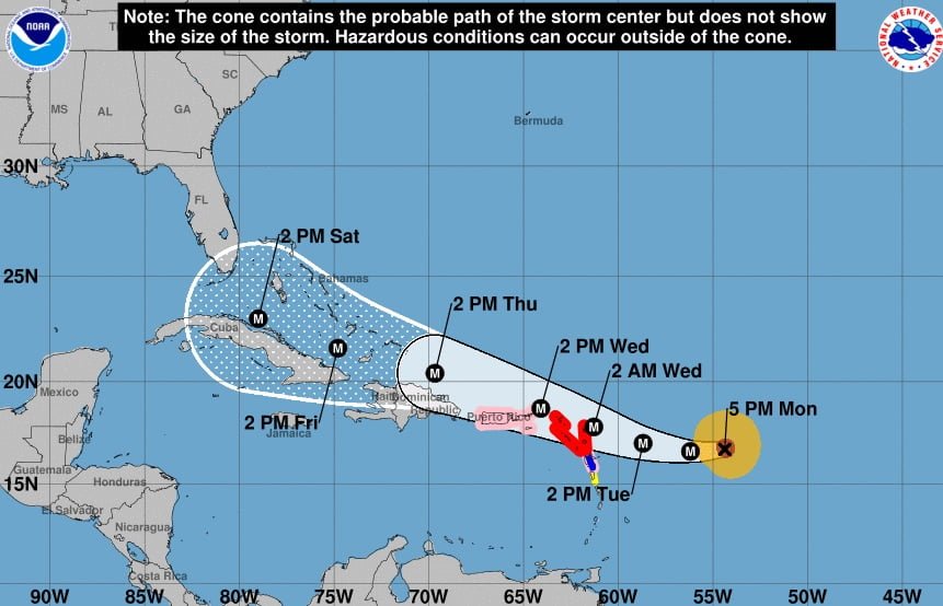 En las próximas 12 a 24 horas se pronostica que Irma se mantenga con similar rumbo y velocidad de traslación, ganado más en intensidad antes de llegar en la noche de mañana martes al grupo norte de las Antillas Menores.
