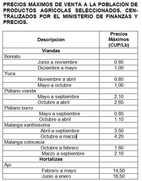 6. Para el resto de los productos agrícolas que se acopian por empresas estatales, con precios no centralizados, se fijan márgenes comerciales que no excedan el 40%, lo cual favorece que no se incrementen excesivamente los precios a la población.
