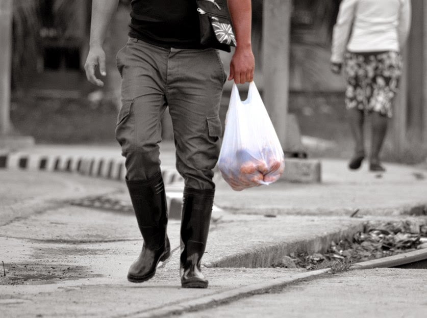 Si vas a buscar algún mandado a la bodega, allí la tendrás que llevar. Lo mismo si vas a comprar a la tienda, te dejan alguna en dependencia de lo que lleves o cuando vas al agro, la debes adquirir a un peso cubano.